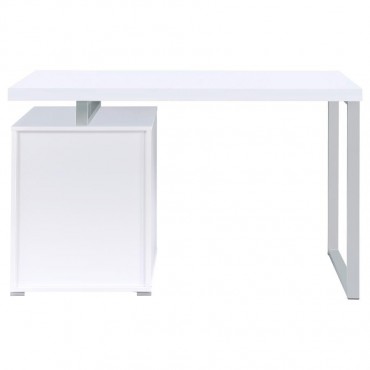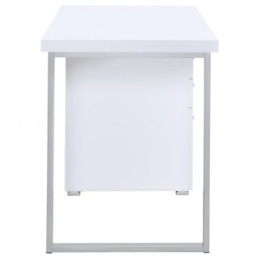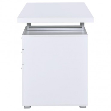 Streamline your workspace with this modern office desk that combines function and style. Supported by a sturdy silver metal frame, the design features a spacious work surface along with two storage drawers and a file cabinet that accommodates both legal and letter-sized documents. A reversible configuration allows you to set up the storage pedestal on either side, providing flexibility for any layout. Crafted with engineered wood and laminate veneer, this desk balances durability with sleek contemporary appeal.