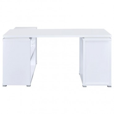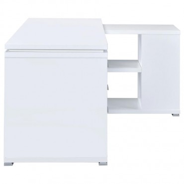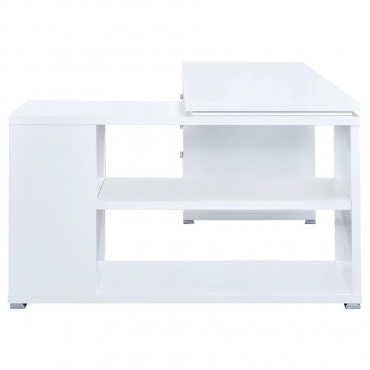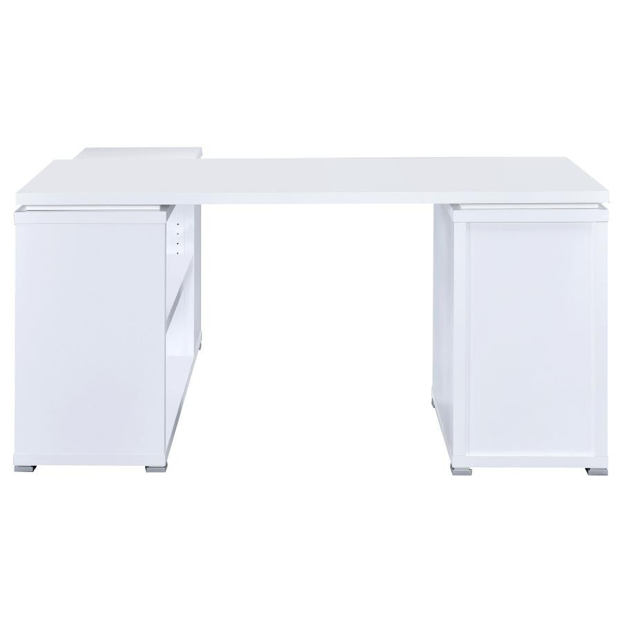 Bring organization and productivity into your workspace with this versatile L-shape office desk. Designed with an articulating return, it offers generous surface space for computers, books, and projects while keeping everything within reach. Two drawers and a built-in file cabinet provide secure storage for documents and supplies, while open shelving adds flexible display options. Crafted with engineered wood and laminate veneer, this sturdy desk blends durability with functional style for the modern office.