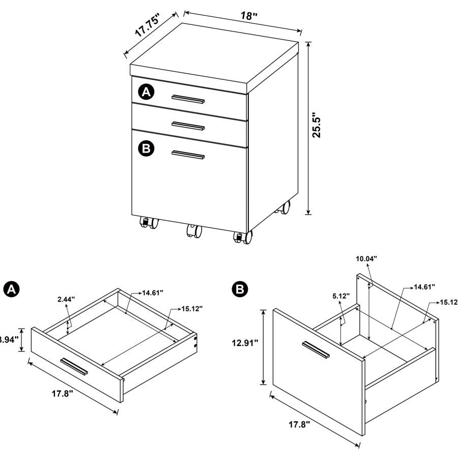 Skylar L-Shape Desk with Mobile File Cabinet Cappuccino