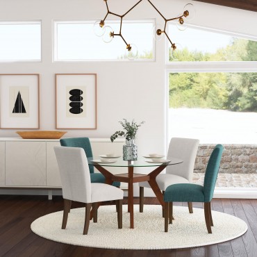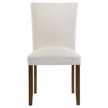 Upgrade your dining table with the fresh silhouettes and contemporary flair of this set of two modern side chairs. Each boasts an armless profile and lovely upholstery that creates the perfect touch of texture. Foam cushions provide exemplary comfort, perfect for everything from weeknight meals with the family to entertaining. Brown finish wood legs provide stability and create a hint of contrast against the upholstery. Choose this set for a new or existing dining table to bring a breath of fresh air.