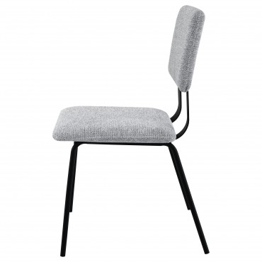 Reimagine your comfortable and inviting dining table with a set of two modern side chairs. Each features an armless profile with clean, slim lines for a versatile design. Sure to complement in a variety of settings, the chairs feature slim cushions with neutral upholstery that offers comfortable seating for friends and family. Each chair features a black finish base, complete with inverted U-shaped legs and thick back supports that add depth and contrast. Choose this set for a modern dining table in your kitchen or dining room.