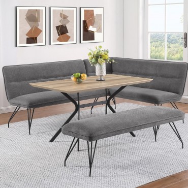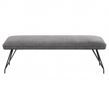 Put the finishing touches on your kitchen or dining room table with this mid-century inspired modern dining bench. Offering vintage appeal, it features splayed, hairpin style legs that bring both lightness and familiarity. The long, backless bench seat is constructed with metal, fabric (100% polyester), rubberwood, foam, plywood, and webbing, providing additional dining seating. The seat features pocket coil sinuous springs and webbing for cushion support, ensuring excellent comfort. The neutral upholstery is complemented by piped trim, adding a fresh, tailored touch to the overall look, while a black finish graces the legs of the bench for a smooth, seamless look at your dining table.