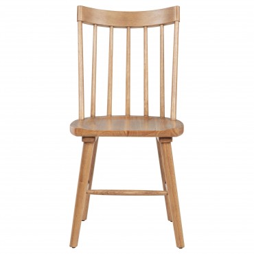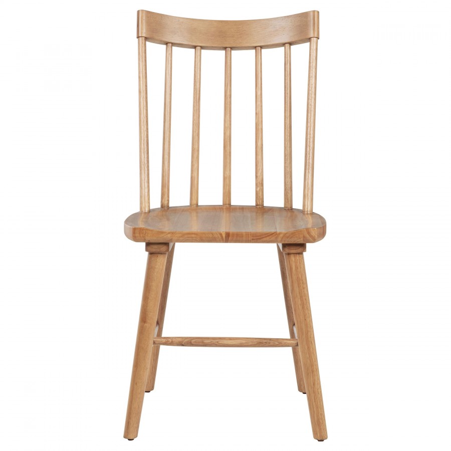 This modern Windsor-style dining side chair refreshes a classic silhouette with a trendy finish, creating a sleek, contemporary accent in any dining room. Built from solid hardwood, it ensures sturdy support and everyday durability. Its slender spindles and gently contoured back balance comfort and style. Whether for casual family meals or special gatherings, this versatile chair seamlessly complements a variety of interior aesthetics.