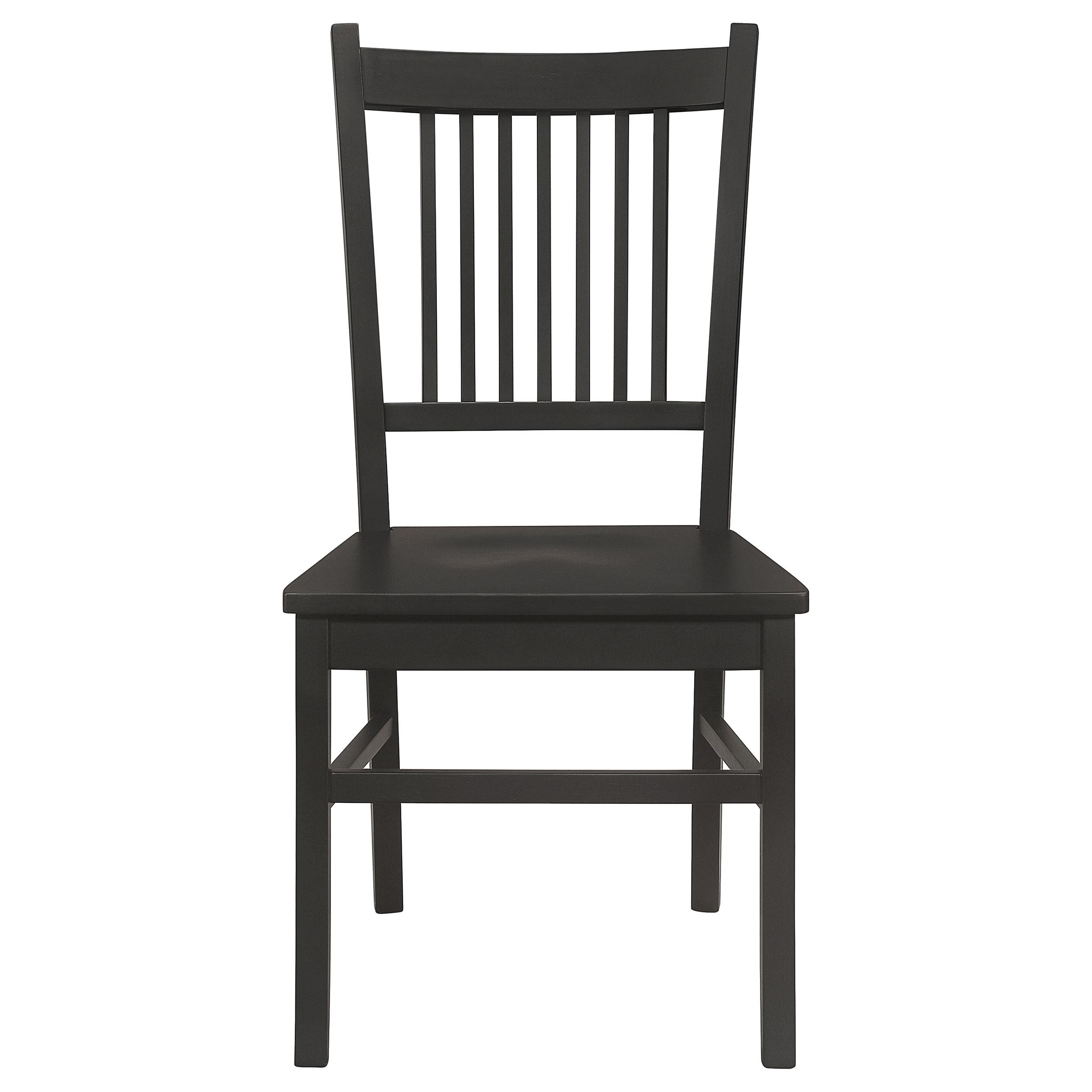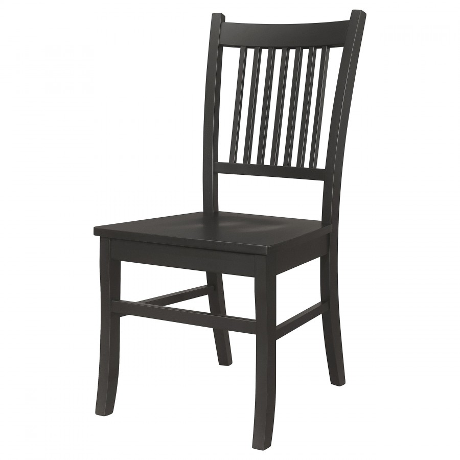 Immerse yourself in the perfect fusion of style and function with our classic mission-design side chairs. Meticulously crafted from select hardwood and veneers, these chairs exude timeless elegance. The matte black finish adds a refined touch to your dining ambiance, elevating the overall aesthetic of your space. Experience comfort and sophistication as you dine with these exquisite side chairs, designed to enhance your dining experience to new heights.