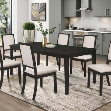 Update your dining room decor with posh, elegant vibes. This dining chair exudes simple class and character. Gracefully flowing lines give it a sleek, sophisticated appearance. Its seat is upholstered in soft, creme chenille, providing an appealing contrast to its distressed black finish. Made from solid hardwoods and veneer, this chair is strong, sturdy, and comfortable.