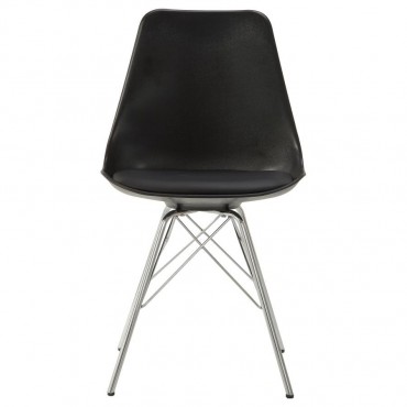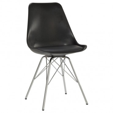 Designed with modern elegance in mind, this grey dining chair beautifully updates a contemporary home with its stylish silhouette and sleek materials. The seat and back are covered in smooth leatherette upholstery, adding a subtle textural appeal that pairs perfectly with the lightly cushioned seat for optimal comfort. The chrome-finished, metal base forms bold, angular designs, creating an eye-catching look that brings a fresh, modern vibe to any dining space. Perfect for casual meals or formal gatherings, this chair effortlessly enhances your dining room decor. Let this sophisticated piece breathe new life into your home with its chic and functional design.