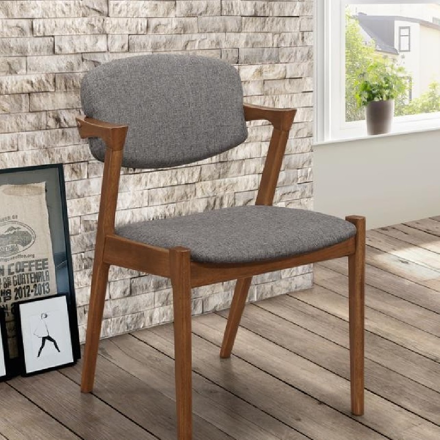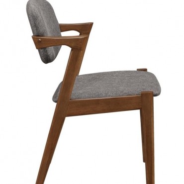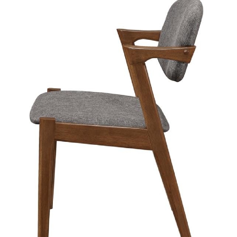 Choose from the best with this sophisticated mid-century modern Z-chair, designed to bring clean lines and dramatic angles into your home. Upholstered in a richly toned fabric, the padded backrest and seat provide a comfortable place to rest, whether you're dining or relaxing in the living room. The sturdy frame, crafted from solid hardwood, features a smooth finish that contrasts beautifully with the fabric upholstery, while sharp armrests and an independent, hovering seat back add a contemporary flair. With acutely angled back legs and straight front legs, this chair showcases a striking, rebellious silhouette that makes a bold statement. Perfect for pairing with a modern dining table or using as a stylish accent, this chair combines classic design with cutting-edge style.