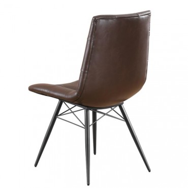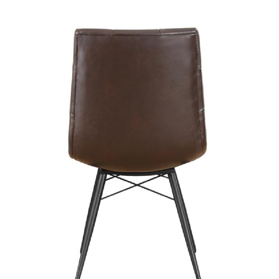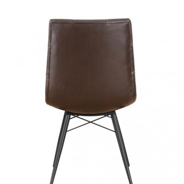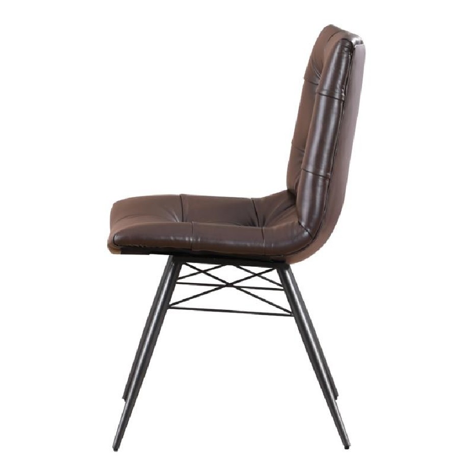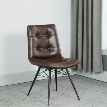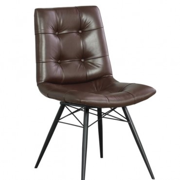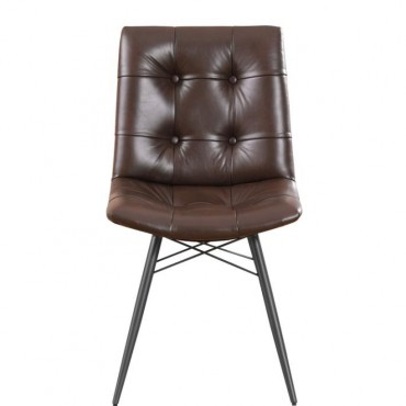 Looking to add some style to your dining room? Look no further than this charming, leatherette side chair. The beautiful brown upholstery adds warmth to a room. Decorative button tufting adds a trendy yet tasteful touch. Complete with sleek, angled legs in a gunmetal finish, this chair has a mid-century modern feel that enlivens any space.
