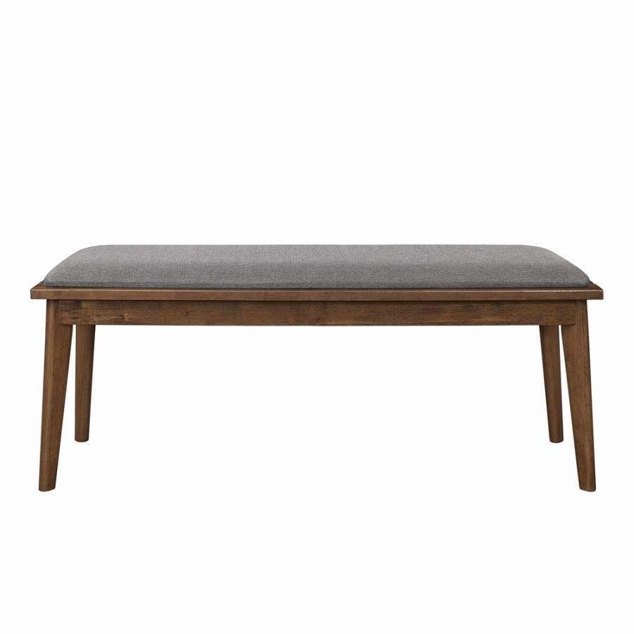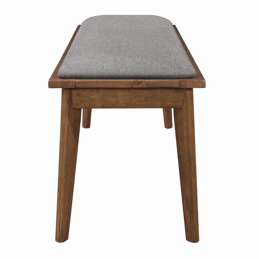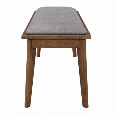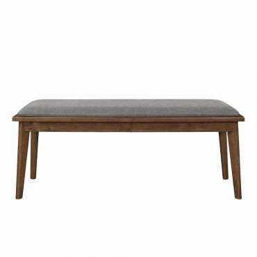 Accommodate overflow seating without the hassle of finding extra chairs. Inspired by a retro design model, this everyday dining bench delivers a fresh new vibe that blends perfectly in modern or more traditional design schemes. Warm walnut finish wood composition shows off a minimalist profile with mid-century flat tapered legs and a lip around its padded seat. Beautifully neutral fabric upholstery adds a homey touch. Choose this bench as a delightful alternative to conventional seating.