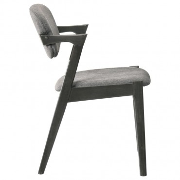 Choose from the best with this sophisticated mid-century modern Z-chair, designed to bring clean lines and dramatic angles into your home. Upholstered in a richly toned fabric, the padded backrest and seat provide a comfortable place to rest, whether you're dining or relaxing in the living room. The sturdy frame, crafted from solid hardwood, features a smooth finish that contrasts beautifully with the fabric upholstery, while sharp armrests and an independent, hovering seat back add a contemporary flair. With acutely angled back legs and straight front legs, this chair showcases a striking, rebellious silhouette that makes a bold statement. Perfect for pairing with a modern dining table or using as a stylish accent, this chair combines classic design with cutting-edge style.