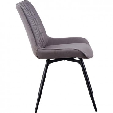 Effortlessly stylish and functional, this swivel dining chair blends retro-inspired charm with modern comfort. Wrapped in plush leatherette upholstery, the diamond-quilted interior adds rich texture and an elevated touch. A padded bucket seat with a tall backrest ensures lasting support, while the 360-degree swivel mechanism allows easy movement. Resting on tapered, flared legs in a sleek gunmetal finish, this chair is perfect for dining spaces, kitchen nooks, or casual lounge areas, bringing a playful yet sophisticated flair to any setting.
