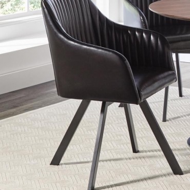 Arika Leatherette Upholstered Swivel Dining Arm Chair Black