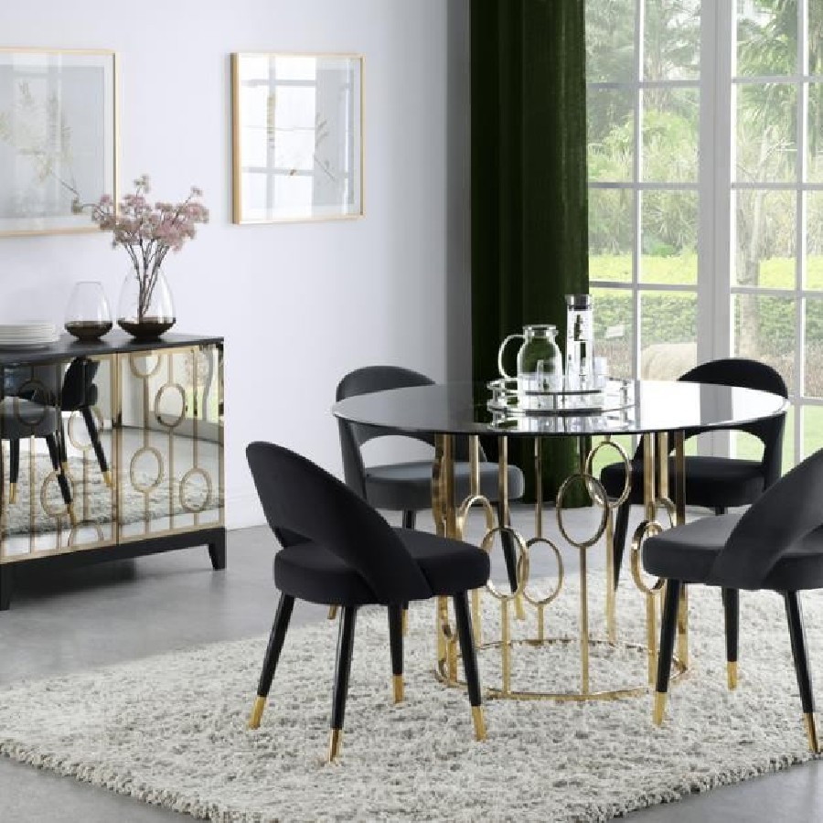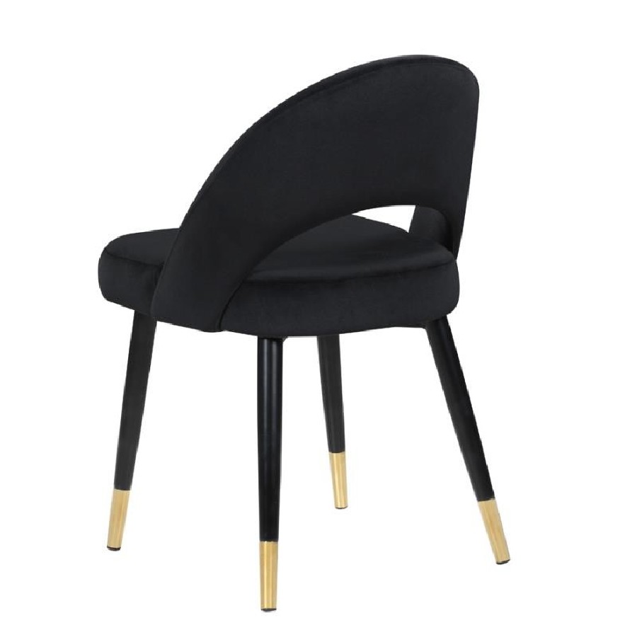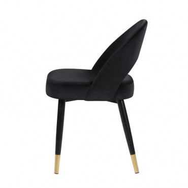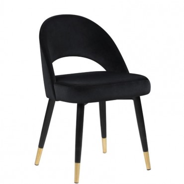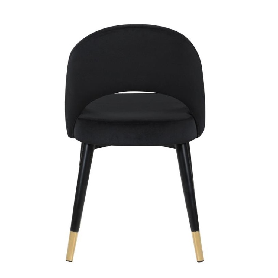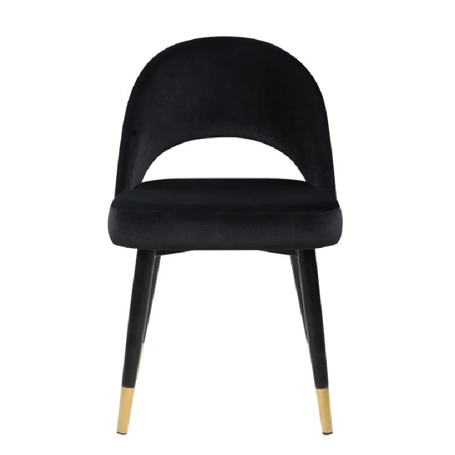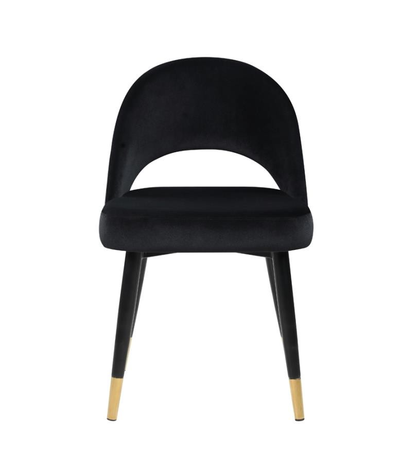 Add a touch of retro-inspired elegance to your dining room with this stylish dining side chair, featuring an elegant bucket-style seat that embodies Mid-Century modern charm. Wrapped in luxurious velvet, each chair provides a supportive, long-lasting seating experience, making it perfect for hosting dinner guests or enjoying a cozy meal. The flared, tapered legs, finished with dramatic gold-capped feet, add a regal Hollywood glam touch that enhances any dining space. This versatile chair effortlessly complements various color palettes and brings a bold statement to both formal and casual settings. Pull these chairs up to a spacious rectangular dining table to create an inviting and chic atmosphere for any gathering.