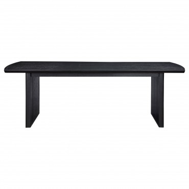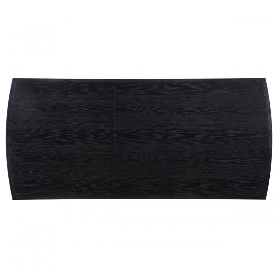 Inspired by trending interior design aesthetics increasingly mixing modern and traditional elements to invent its own style, this five-piece wood dining set stands out to impress. Crisp, clean style and a contrasting color and finish palette begin the dramatic look of a set suitable for both modern and transitional settings important to your everyday living. Distressed black finish wood construction on all pieces gains attention to a minimalist table design with straight, flat leg sections under a sleek top with linear silhouetting and a dimensional top chamfer curving along its edges. Chairs offer a clean silhouette with black finish wood framing, tapered legs, and ornate notched tops with linear carvings thrown in for extra dimension. Soft ivory fabric upholstery is intriguingly placed on both sides of top cushions and over a padded seat.