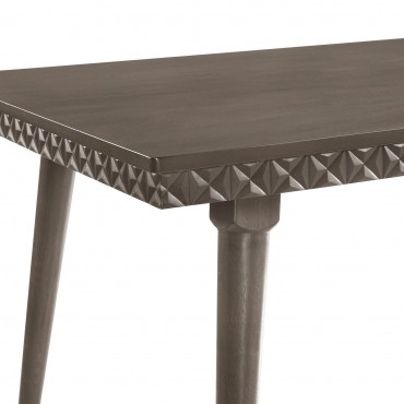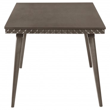 Create an inviting, contemporary dining space with this stylish dining set. Anchored by a sleek, rectangular dining table and complemented by plush side chairs, this set combines comfort with modern aesthetics. The table and chairs feature a sophisticated molded trim, offering a touch of artistic flair, while the chairs add texture and warmth with their plush upholstery. Perfect for family meals or elegant dinners, the set brings a touch of refinement and character to any home.