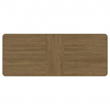 This dining set blends modern craftsmanship with natural textures for a refined yet inviting feel. The dining table features a trestle base with an antique brass-finished metal stretcher bar, adding stability and contrast. Rounded corners soften the rectangular top, while a removable 18-inch leaf allows for flexible seating. The dining chairs feature handwoven cane backrests, solid wood frames, and Pirelli webbed seat cushions upholstered in beige linen-like fabric for lasting comfort and support. A wood grain finish enhances the natural beauty of the materials.