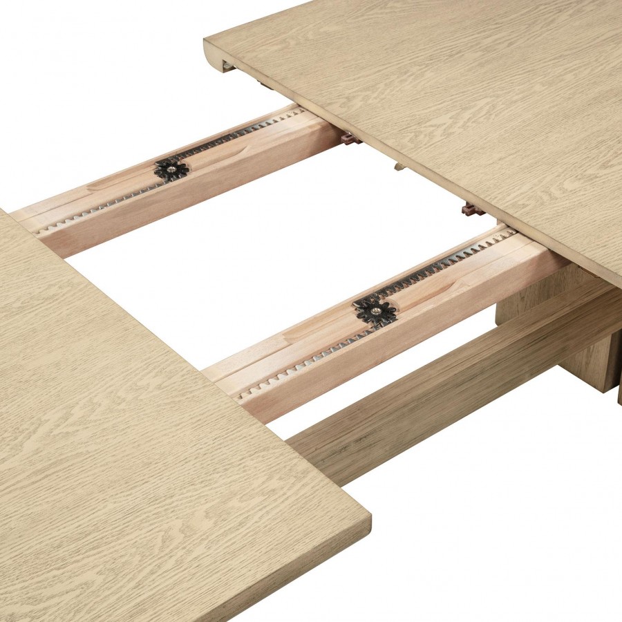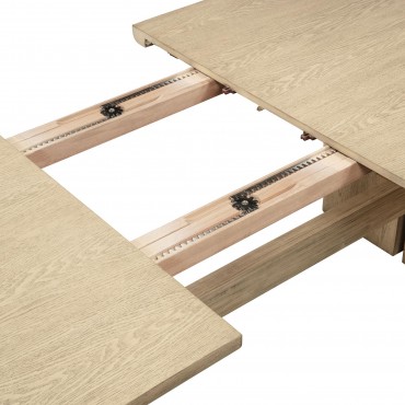 Transform your dining area with this exquisite dining set, featuring a spacious dining table, handcrafted dining chairs, and a beautifully designed sideboard cabinet. The table, made from solid wood, engineered wood, and oak veneer, offers a smooth rectangular top with an 18-inch extension leaf, providing ample space for up to 8 guests. Each dining chair is crafted with a natural wood frame, hand-woven radio weave cane backrest, and a foam seat cushion upholstered in beige fabric, ensuring both style and comfort. The standout of the set, the matching buffet, features ample storage with three spacious drawers and three cabinet compartments behind four doors, perfect for organizing dinnerware, linens, or other essentials. With its cohesive blend of craftsmanship, durability, and natural beauty, this dining set is perfect for creating a welcoming and stylish space for any occasion.