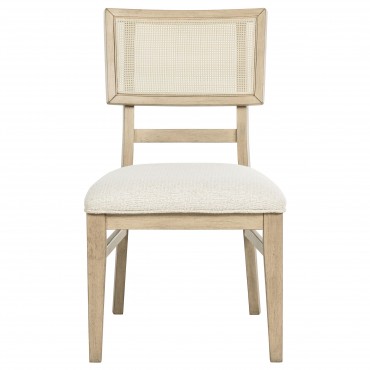 Create a warm and inviting dining space with this beautifully coordinated dining set, combining the natural elegance of a spacious dining table and handcrafted dining chairs. The table, crafted from solid wood, engineered wood, and oak veneer, features a smooth rectangular top with rounded edges and an 18-inch extension leaf. Paired with the hand-woven radio weave cane dining chairs, this set adds a touch of artisanal charm and natural beauty to any room. Each chair is designed with a sturdy wood frame, a foam seat cushion upholstered in soft beige fabric, and a light, airy backrest that balances comfort and style. Together, the table and chairs offer a seamless blend of durability and sophisticated design, making this set perfect for family meals, gatherings, or special occasions.