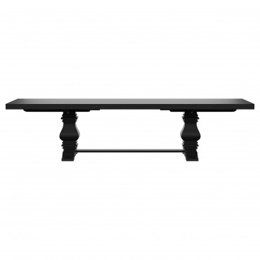 Transform your dining space with the perfect blend of timeless elegance and modern comfort. This dining set showcases a stately rectangular table with a double pedestal trestle base, evoking romantic charm and artisanal craftsmanship. The antique black finish lends a dramatic, yet versatile touch to any dining room. Paired with beautifully tufted dining chairs, the set brings a soft, inviting aesthetic, with plush cushioning and a graceful wingback silhouette. Designed for hosting family dinners or special gatherings, the table expands easily with a removable leaf, ensuring ample space for cherished guests. This dining set combines refined detail and functional versatility, creating a warm and welcoming space for every meal.