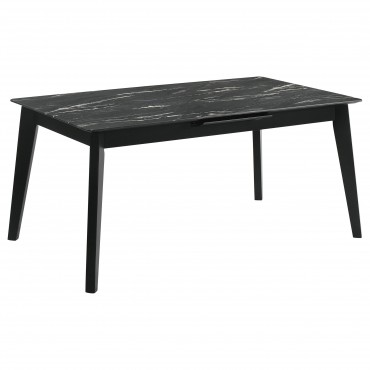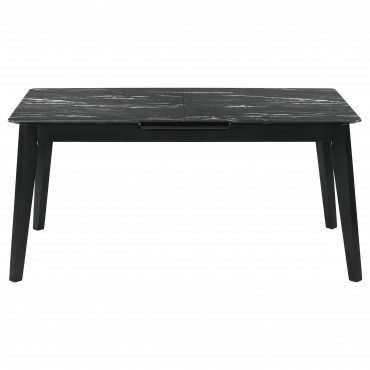 Envision your gatherings transformed with this exquisite dining set, where the sleek lines of modern design meet the timeless allure of faux marble. The table's luxurious black marble-esque top is a symphony of style, supported by fin-style legs that ground it with a touch of sophistication. As your ensemble grows with the seamless self-storing extension, the dining tableau adapts, offering a spacious stage for both feasts and intimate conversations. Accompanying the table, the Danish Y-shaped wishbone chairs, dressed in black and beige, whisper of coastal breezes and relaxed elegance, their form both a nod to tradition and a statement of contemporary grace. This dining set doesn't just host meals; it curates experiences.