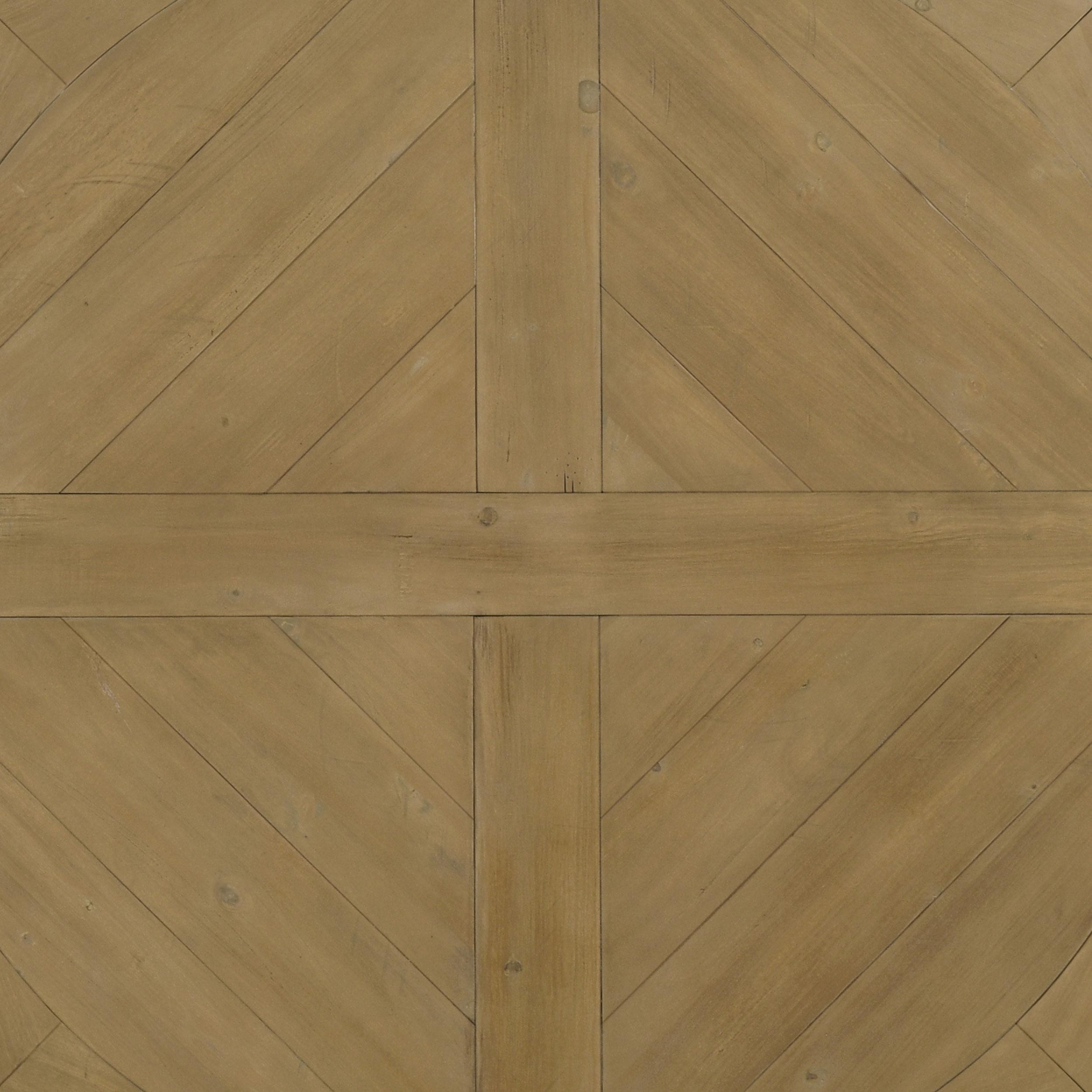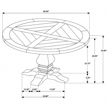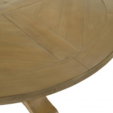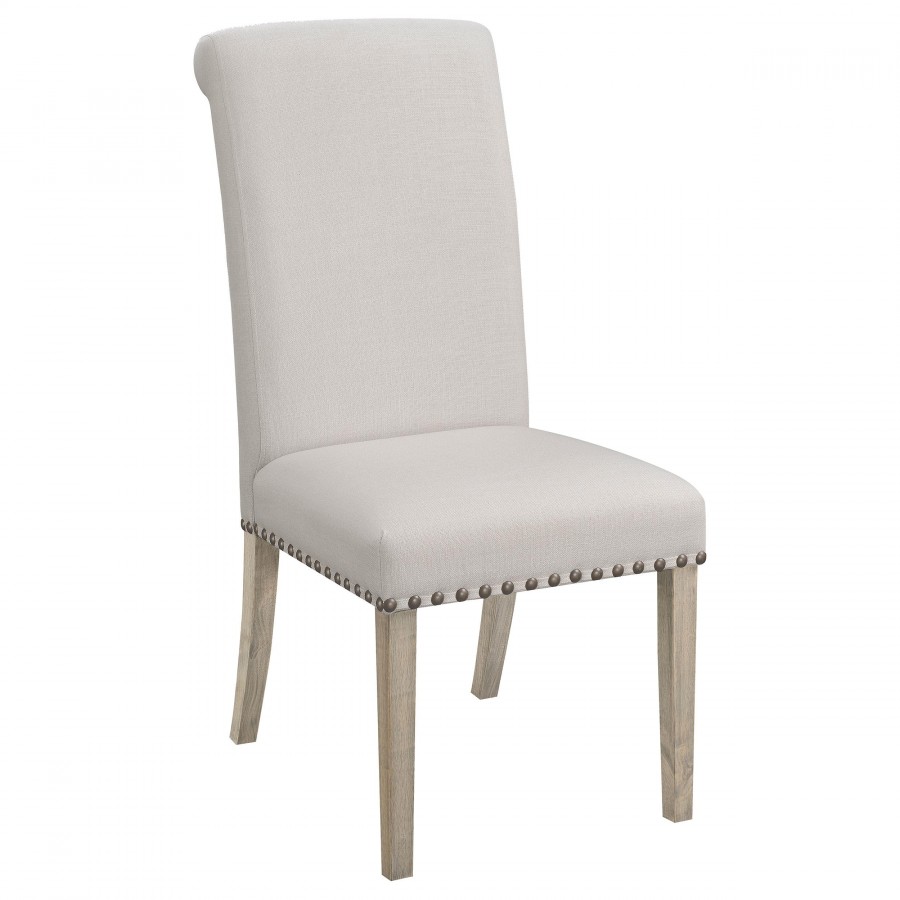 Encourage leisurely enjoyment of delicious meals and favorite people with a seven-piece traditional dining set. It centers on a round wood dining table, complete with a decorative pedestal that enhances a classic look and feel. Its rustic smoke wood finish is warm and inviting, perfect for an everyday dining room. The set is complete with six side chairs, each featuring tall rolled backs and nailheads running along the bottom edge of the seat. The upholstery is a neutral beige, and the foam cushions offer the ultimate comfort and support to you and your family.