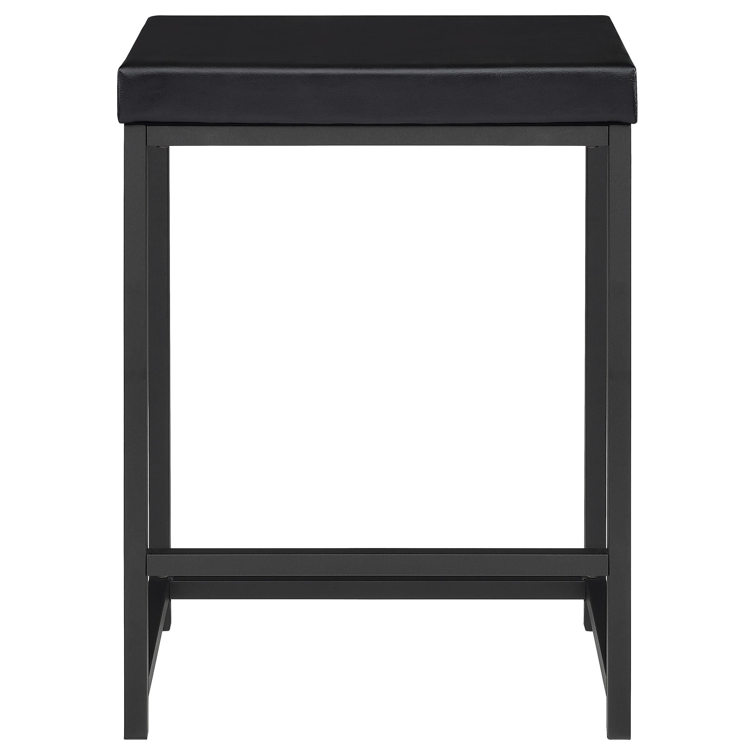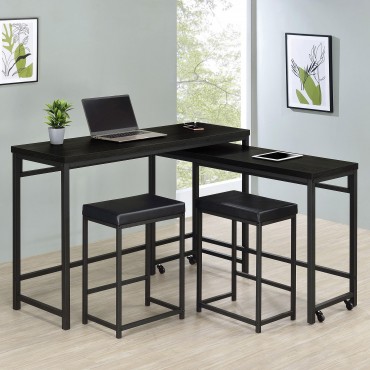 When space is at a premium, this modern four-piece counter height dining set does everything you need and more, easily serving as dining table, workspace, or homework spot. It features clean, crisp design with straight lines and square corners, all in a black finish that blends into surrounding decor in virtually any setting. The larger table includes a USB port in its top, while the smaller nesting table is on wheels that allow for easy movement to the perfect position for every occasion. Two stools are backless, with plush foam cushions and faux leather upholstery. Built in footrests offer added comfort and support for all to enjoy.