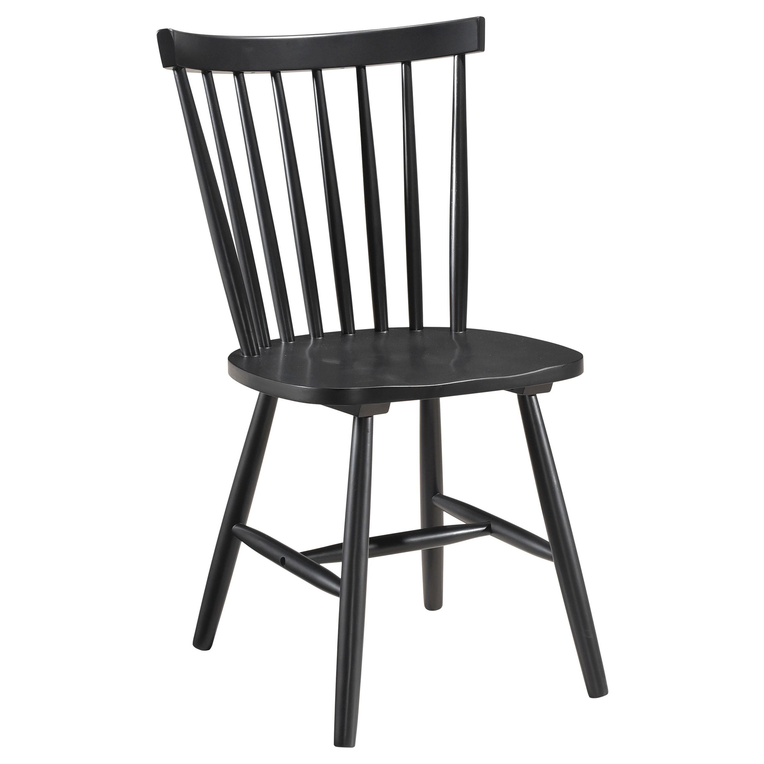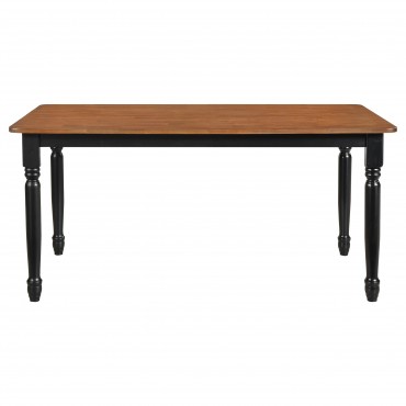 Put a cottage core spin on your kitchen or dining room with the charming traditional details of this five-piece dining set. It centers on a rectangular dining table complete with a rectangular top in a warm walnut wood finish. The base is black, creating bold contrast, and features turned style legs that adds character and dimensionality to your space. The set offers ample comfort with four side chairs, each in a matching black finish. Curved backrests and spindles provide support, while a contoured wooden bucket seat is great for meals with friends and family.