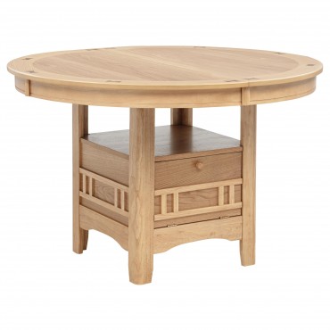 This oval dining table invites connection through thoughtful design and graceful adaptability. With a removable leaf, the surface transitions from a compact 42 inch round to an extended 60 inch oval, unfolding effortlessly to welcome more moments around the table. A sculpted central base creates visual balance while offering generous leg room and discreet leaf storage below. Crafted from solid rubberwood, engineered wood, and oak veneer, the tabletop reveals soft grain detail and a smooth, refined touch. Designed to expand space and moments alike, this table moves seamlessly from everyday dining to shared celebrations.