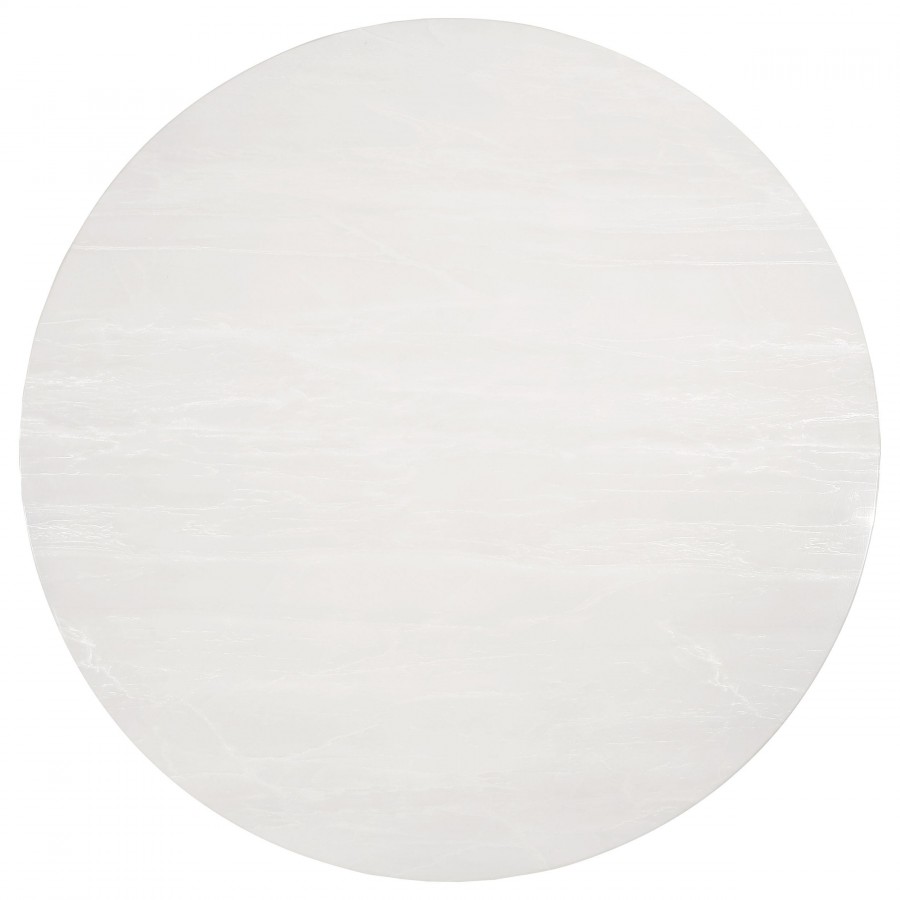 Updated style elements offer a clean look with a wow factor to your contemporary dining room or kitchen with this modern round dining table. A bit on the casual side of glam, this table and its round top fill a need for space-conscious configurations as well as modern optical impact associated with circular shapes. A clean China white top made of genuine marble with engineered marble veneer is slender and sophisticated, perfect for bridging design motifs. Embrace a geometric-inspired gold stainless steel base that becomes a focal point for its brilliance and silhouette. Dress up this chic round table with compatible chairs and accessories that turn your home into a veritable furniture gallery.