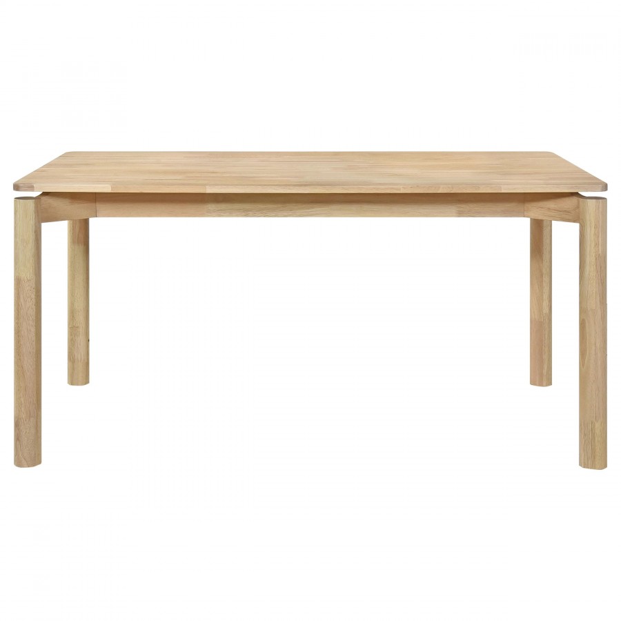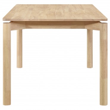 Introduce a natural and refreshing ambiance to your dining space with this solid wood dining table. Designed with a clean, minimalist aesthetic, this table features a 59-inch length that perfectly balances functionality and style. The smooth finish enhances the solid wood construction, providing a soft, versatile look that complements both contemporary and traditional decor. The rounded legs and sleek lines bring a subtle touch of elegance, making it an ideal centerpiece for casual family meals or intimate gatherings.