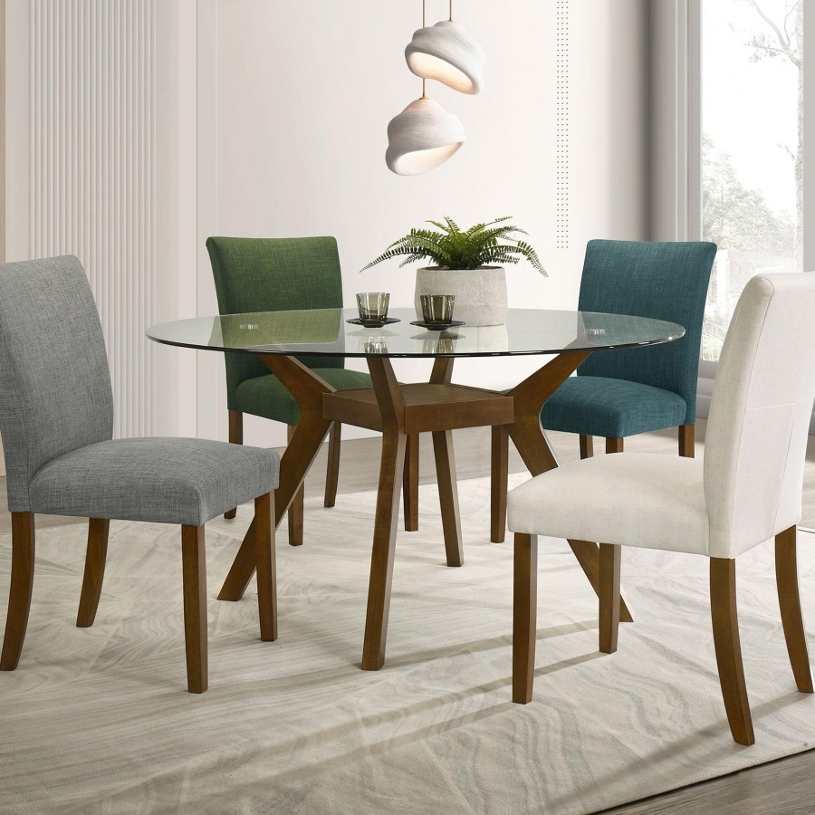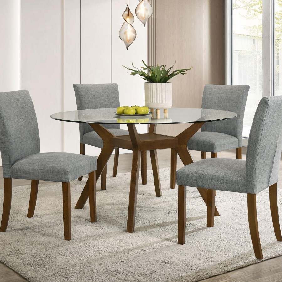 Paxton Round 48-inch Glass Top Wood Dining Table Brown