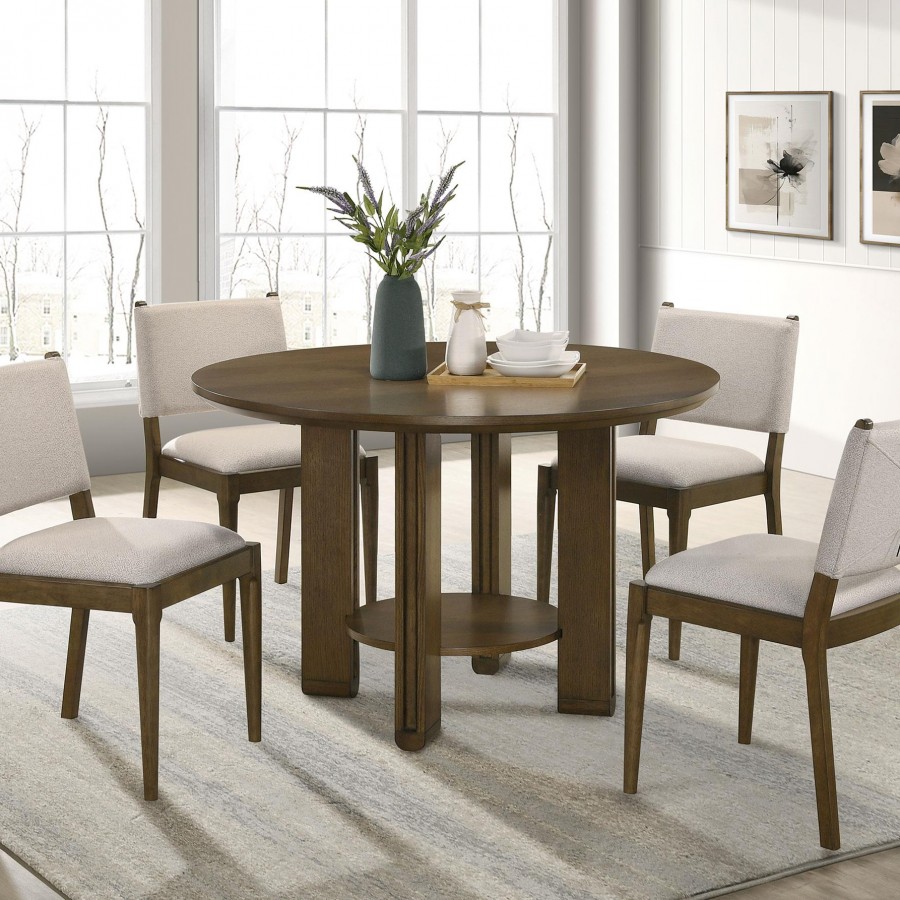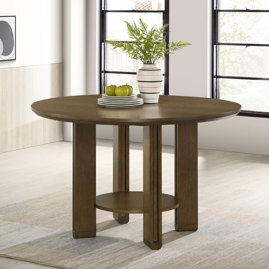 Ottowa 47-inch Round Wood Dining Table with Shelf Brown