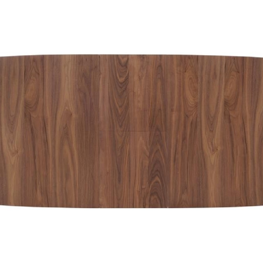This mid-century modern dining table showcases timeless design with a blend of simplicity and function. Crafted from durable rubberwood with a natural walnut veneer, it features a sleek rectangular top with rounded corners and a reverse beveled edge for a refined finish. A 16-inch butterfly extension leaf allows the table to expand up to 75 inches, easily accommodating additional guests. Supported by slim, tapered legs, it offers a stylish centerpiece for any modern dining room.