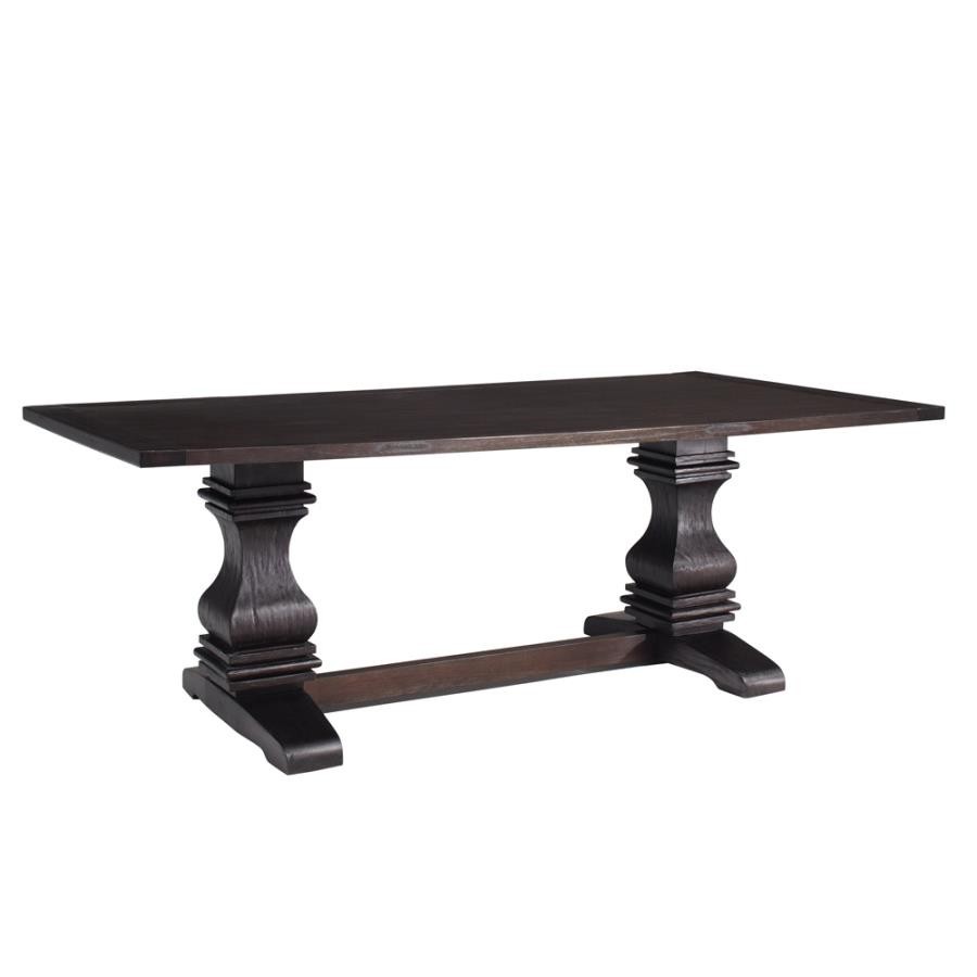 A home with a country design deserves a dining table with a rustic appeal. This dining table is constructed with a rectangular design that's long and wide. The stylishly curved table legs are connected with a trestle-like piece that adds durability. Table is ideal for big family gatherings with animated conversation. With a set of matching side chairs or armchairs, this table looks great in any formal dining setting.