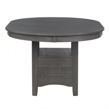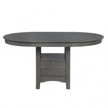 The ultimate in versatility and engaging style, this wood dining table is a perfect centerpiece in a dining room or breakfast nook. The ingenious base features both closed storage and an open shelf, creating opportunities for storage and display. A medium grey finish is a contemporary addition to rubberwood and MDF construction. The table is complete with an 18-inch extension leaf perfect for welcoming friends to gather for a meal. Clean lines are accented with arched trim that adds a pleasing hint of detail.