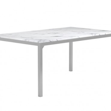 Dress up a dining room with striking, modern opulence. This gorgeous, contemporary dining table flaunts a smooth, white, marble top for a luxurious design that's sure to impress. The table base is made with top-quality metal in a gleaming chrome finish that shines in the light. From everyday dinners to elaborate feasts, the rectangular surface provides all the space you need for family dining enjoyment. Surround this modern table with your favorite chairs to complete a formal dining room in style.