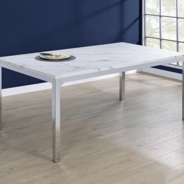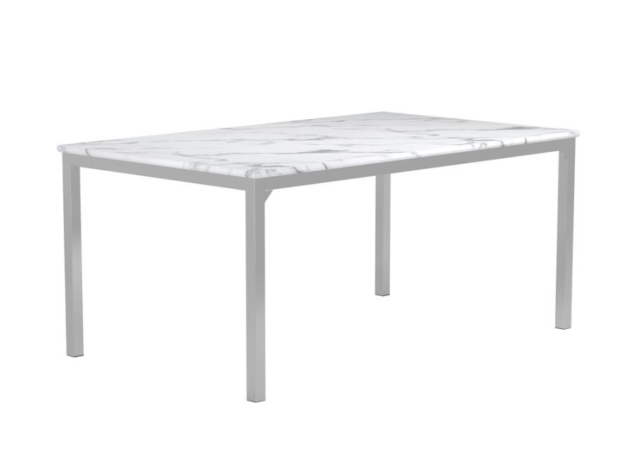 Athena Rectangular 64-inch Faux Marble Dining Table Chrome