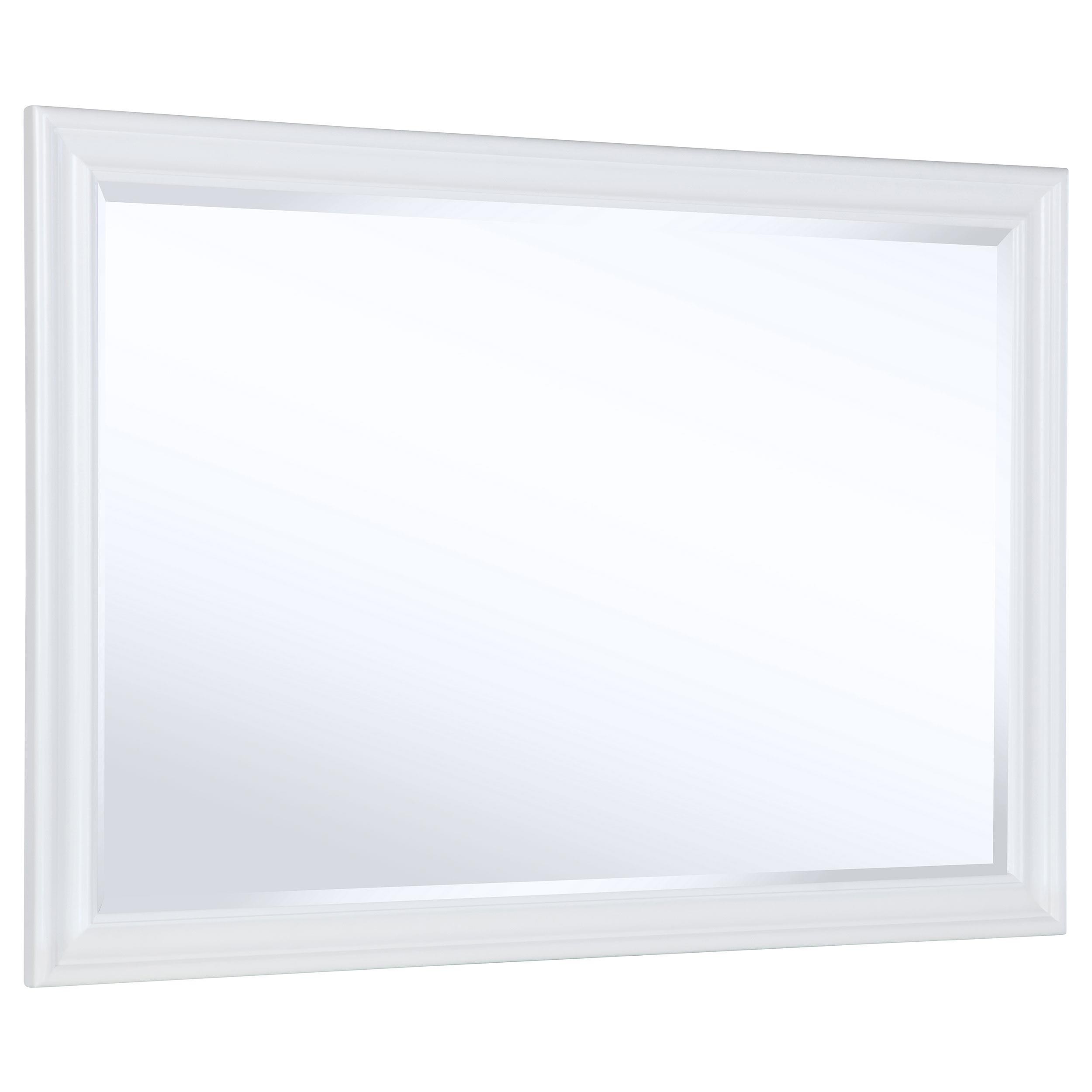 Upgrade the look and feel of your dresser with a modern framed mirror. It mounts directly to your dresser and features a horizontal silhouette perfect for choosing jewelry or fixing your hair in the morning. A white finish graces its stylish molded-style frame, offering dimension and texture in your bedroom. The mirror boasts beveled glass, adding a graceful, timeless touch of style. Add a vase of flowers or decorative sculpture in front for a stylish presentation.