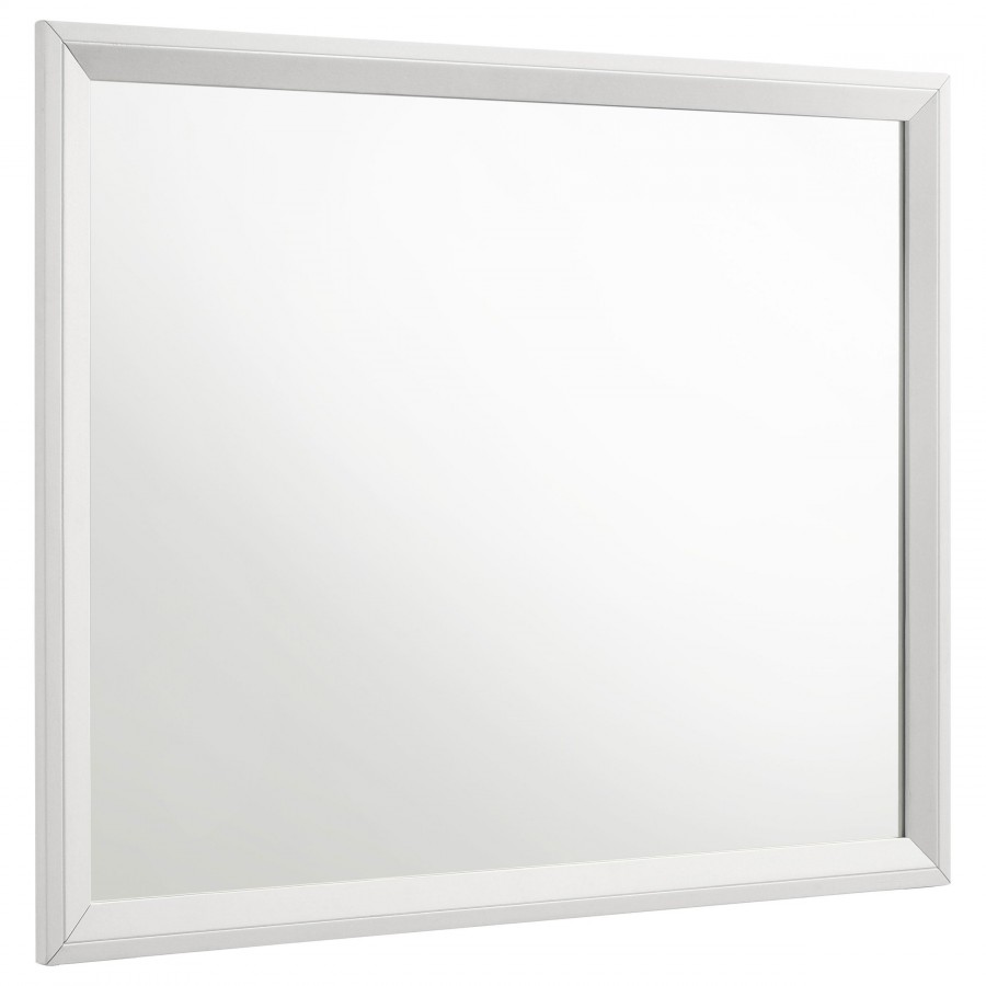 Upgrade your bedroom with the stylish look of a modern dresser mirror. This design is framed, with smooth trim and open corners. A white finish is fresh and contemporary, offering versatility to complement a variety of dressers. The mirror mounts to the back of your dresser, updating new or existing furniture in your inviting bedroom space. The mirror glass is flat, offering a contemporary look and feel.