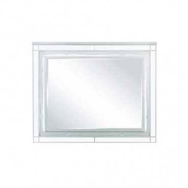 Bring a little glam to your mirror game with this glitzy transitional mirror. The rectangular design features a frame that boasts decorative fret work detail. The mirror glass is beveled at the edges for a clean, polished look. It comes in a vibrant silver metallic finish that radiates throughout any room. It looks great affixed to a glam dresser or as a standalone on the wall, adding a fab modern presence to any bedroom, walk-in closet, or sitting room.