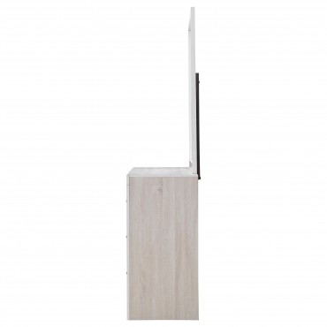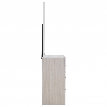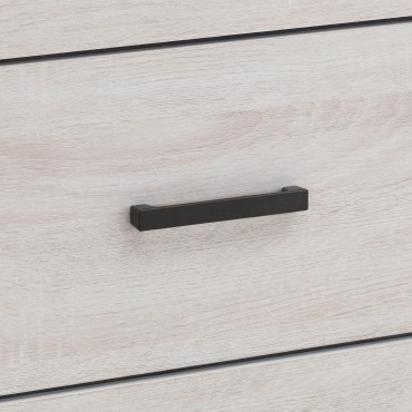 This dresser and mirror set offers a blend of modern design and practical storage. The six-drawer dresser provides ample space for clothing and essentials, while the matching mirror enhances depth and brightness in any room. Crafted from engineered wood with a durable laminate veneer, this set is built for long-term use. Matte dark bronze handles contrast against the sleek frame, adding a refined touch to its contemporary aesthetic.