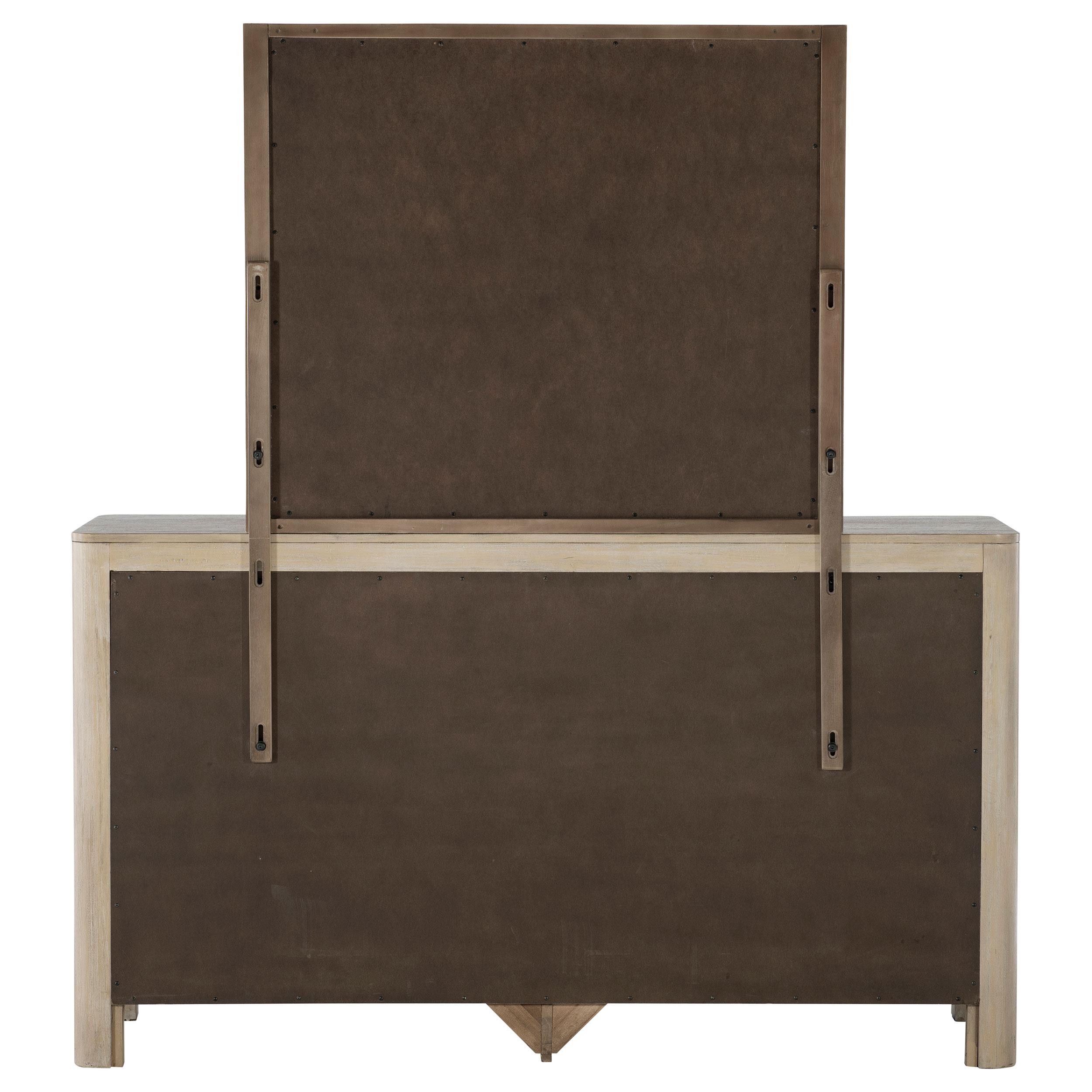 With its broad frame and softened curves, this dresser and mirror set radiates quiet confidence and poise. Sculpted edges flow gracefully around nine generous drawers, while the tall mirror reflects light and space with understated beauty. A hidden jewelry tray in the top drawer adds a thoughtful touch of luxury. Designed to bring harmony and order, this piece is both a centerpiece and a sanctuary for daily rituals.