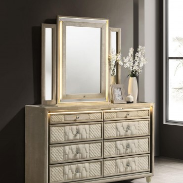 Lorient 8-drawer LED Dresser with Mirror Ivory and Camel
