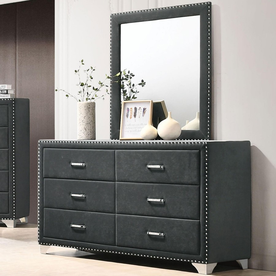 Melody 6-drawer Upholstered Dresser with Mirror Grey