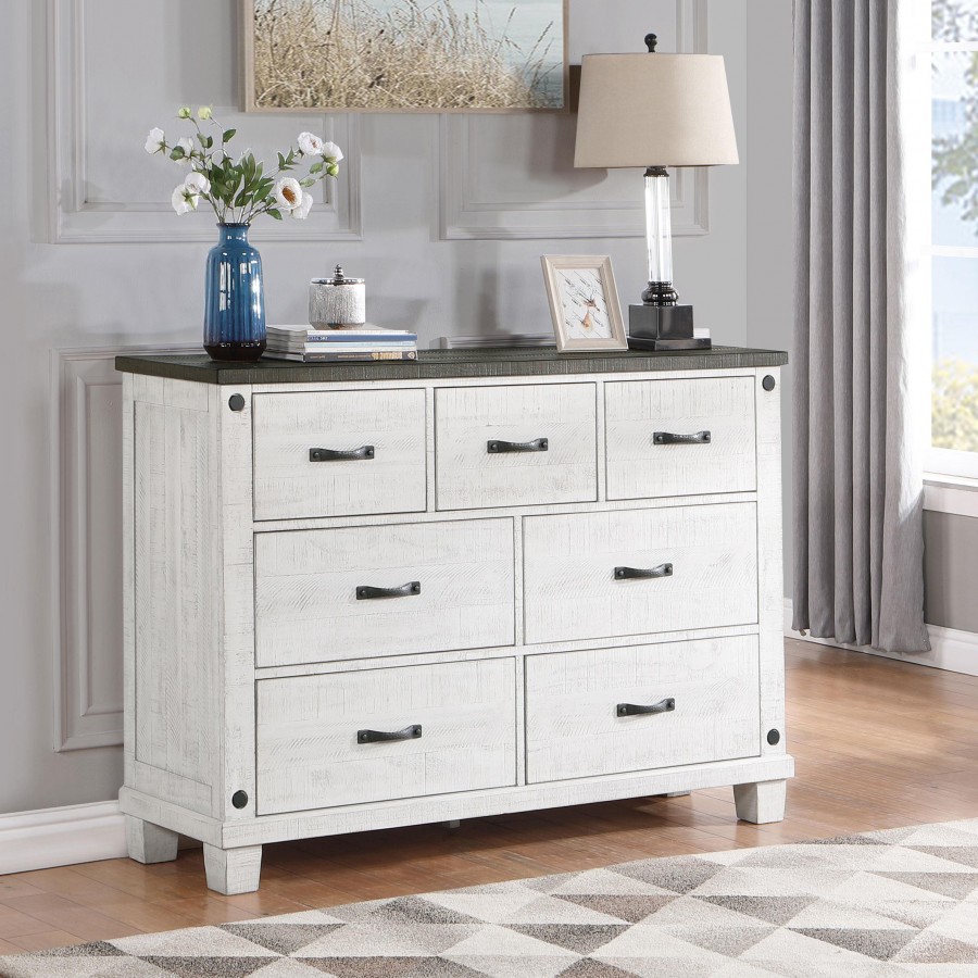Lilith 7-drawer Dresser Distressed White