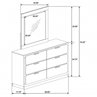 Unveil the essence of minimalism and modern luxury with our sleek six-drawer dresser and matching mirror, a perfect addition to both master and guest bedrooms. The clean lines and Mid-Century Modern flair of the dresser blend seamlessly with its straight handles and matching base, offering spacious storage with a refined aesthetic. Its smooth center glides ensure functionality without compromising on style. The accompanying mirror, framed with the same care and precision, extends the look upward, adding height and elegance to your space. This duo, versatile and sophisticated, pulls together a statement-making ensemble that transcends style trends with enduring simplicity.