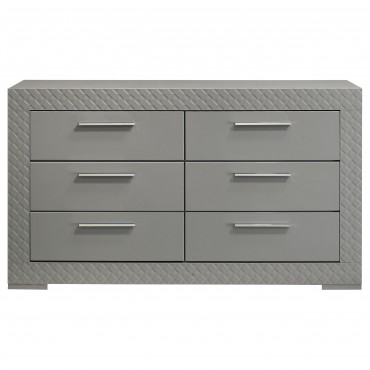 Ives 6-drawer Dresser Cabinet Grey High Gloss