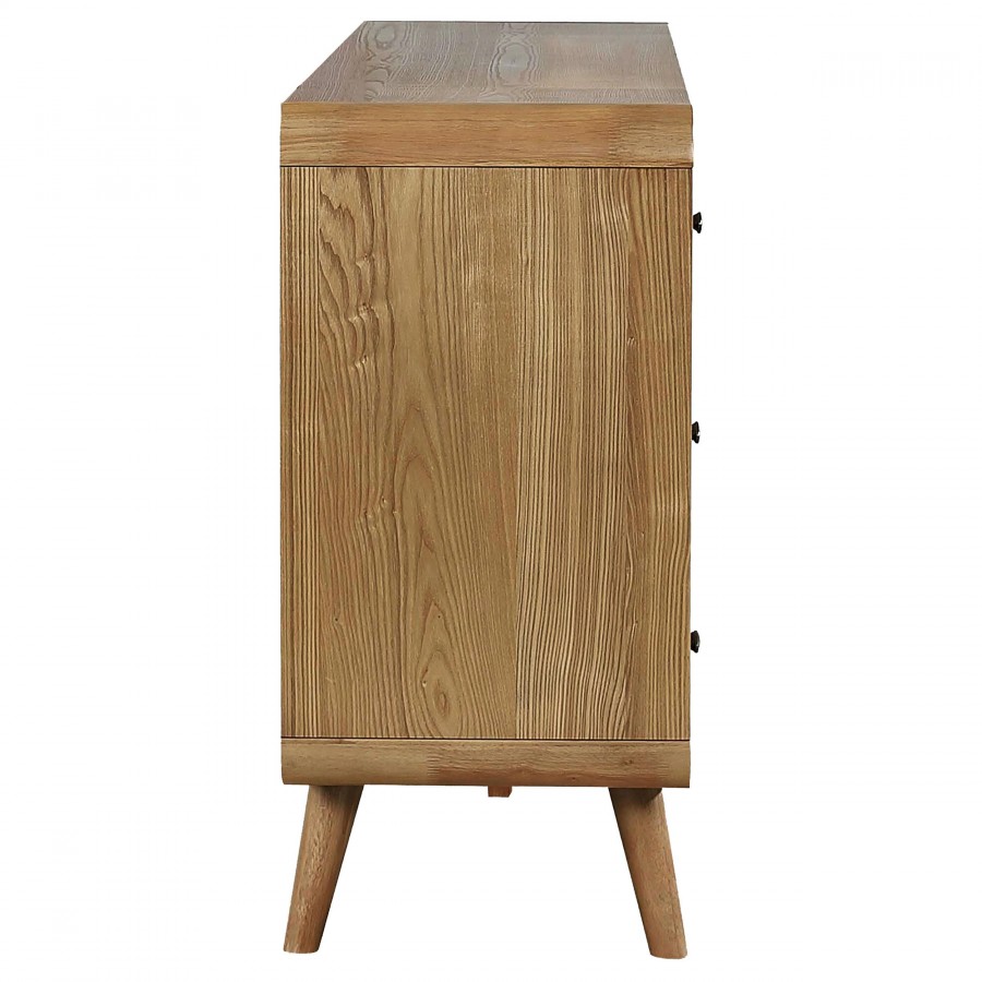 Keep your space neat and organized with this sleek mid-century modern dresser, built with rubberwood, engineered wood, and ash veneer for durability. Featuring six spacious drawers, it offers ample storage for clothing and accessories. Rounded edges and tapered legs exude retro charm, while the felt-lined top drawers add functionality for storing delicate items. The clean, modern silhouette is perfect for enhancing any bedroom's aesthetic.