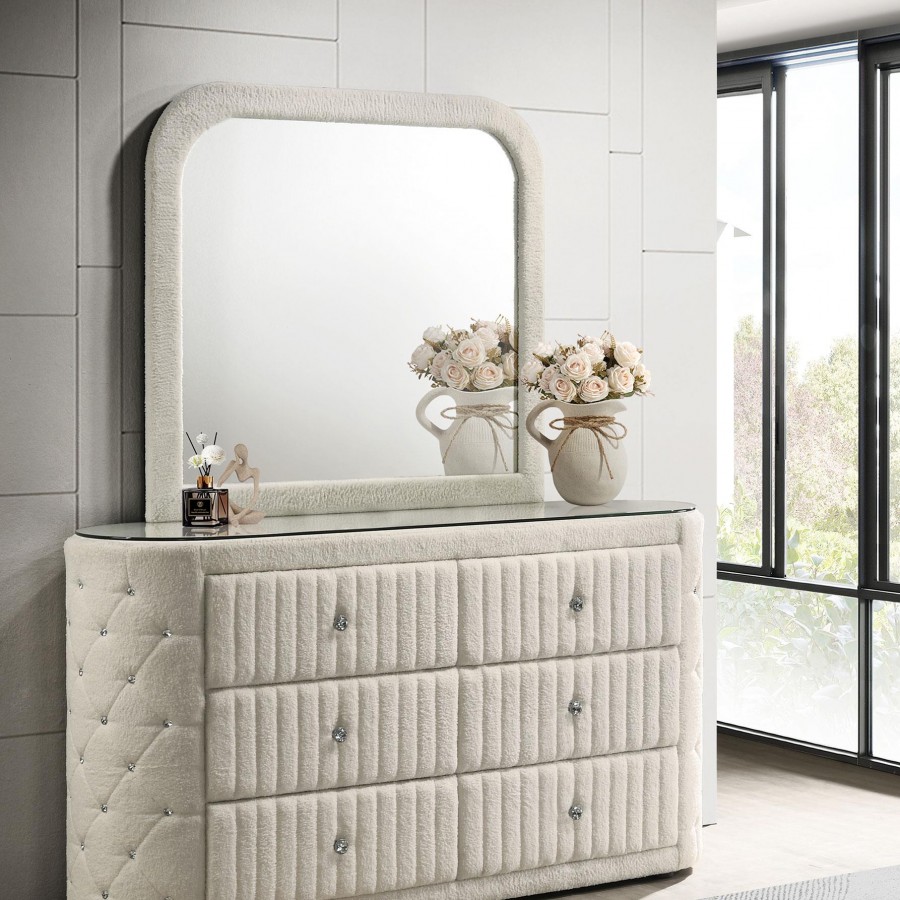 Sonya 6-drawer Upholstered Bedroom Dresser with Mirror Ivory