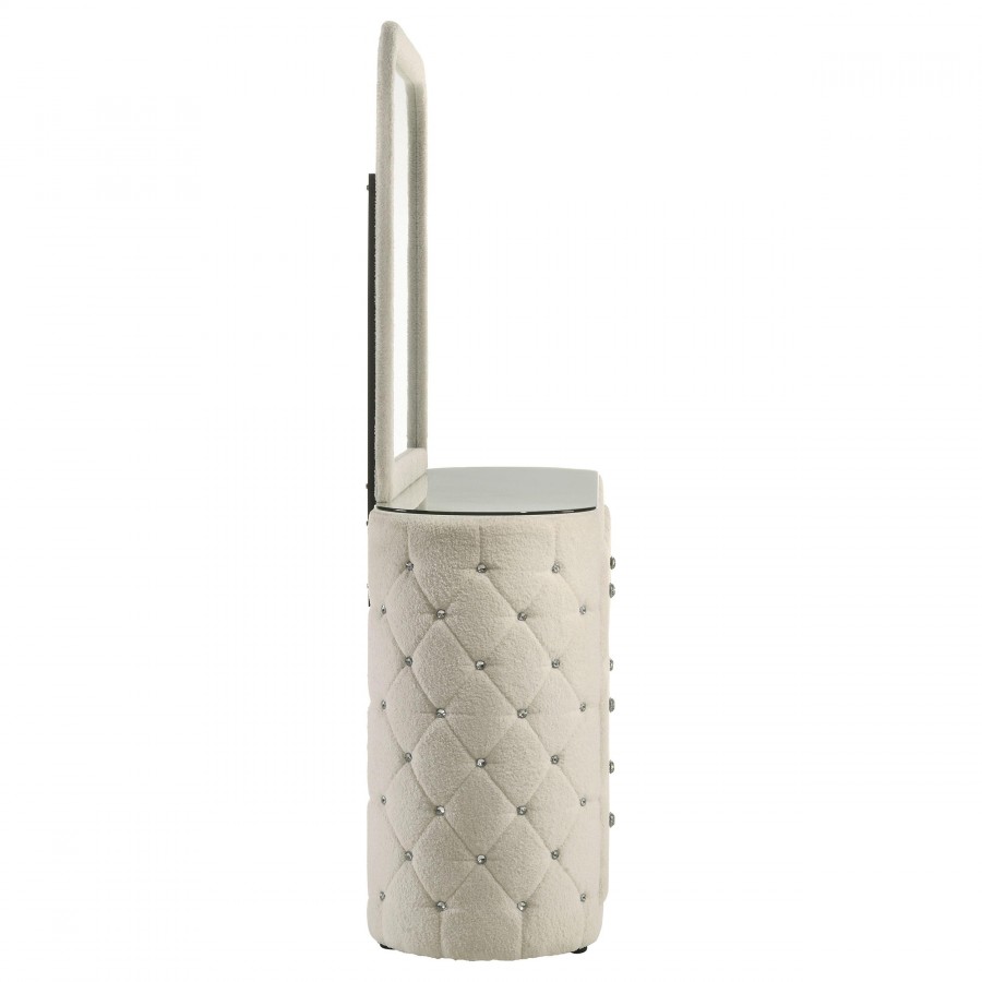 Wrapped in a cloud of boucle and gleaming detail, this dresser and mirror set transforms any bedroom into a personal sanctuary. Diamond tufting along the sides sparkles with embedded crystal accents, while vertical channeling on each drawer adds tailored rhythm and depth. Topped with a sleek mirror framed in matching fabric, the design offers a romantic balance of softness and structure, inviting both elegance and indulgence into everyday routines.
